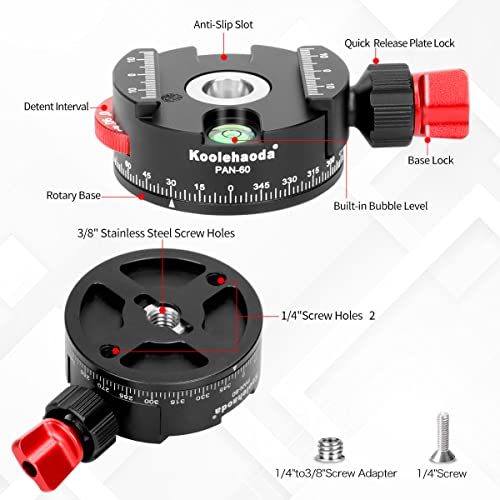 Koolehaoda Testa panoramica per treppiede Testa a sfera per treppiede interamente in metallo a 360° con rotatore di indicizzazione compatibile per Piastra a sgancio rapido Arca Swiss