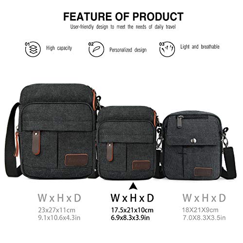 Koolertron Borsa a Tracolla da Uomo in Tela, Tracolla Lunga Classica con Zip Piccola e Leggera per iPad Mini (17.5x21x10 cm, Nero)