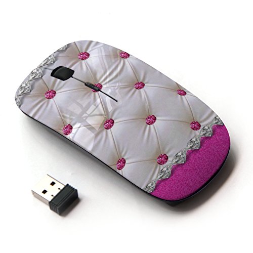 KOOLmouse [ Mouse Senza Fili Ottico 2.4G ] [ Leather Pink White Lattice Diamond Pattern ]