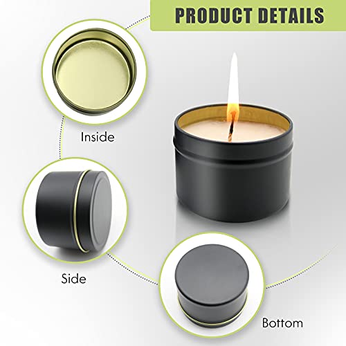 KOOLPUG Barattoli per Candele, 12 Pezzi Contenitori per Candele fai da te con Stoppini e Supporto per Stoppini, Barattoli per Candele Natale, Kit Candele fai da te (nero)