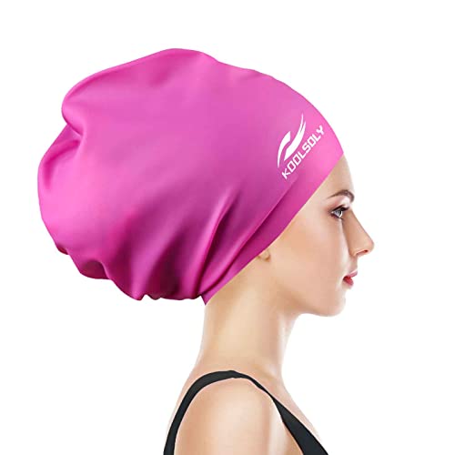 KOOLSOLY - Cuffia da nuoto per capelli lunghi extra large in silicone, per donne, ragazze, uomini e adulti, design speciale per capelli ricci molto lunghi e spessi e intrecciati con trecce afros