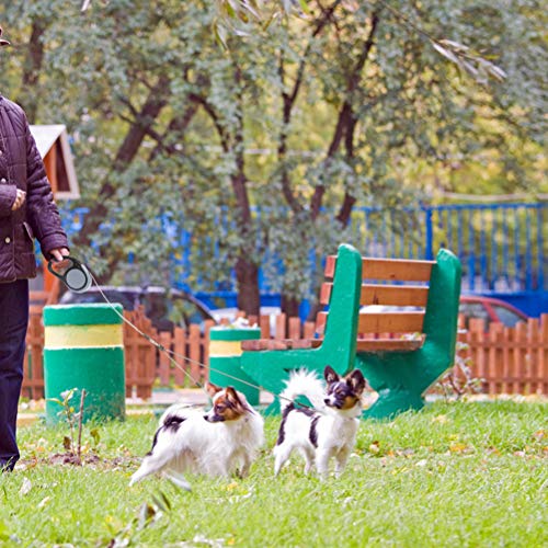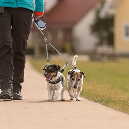 Doppio retrattile: questo guinzaglio retrattile a doppia testa consente di controllare due cani contemporaneamente. Ogni guinzaglio può sopportare 25 kg, adatto per cani di piccola taglia