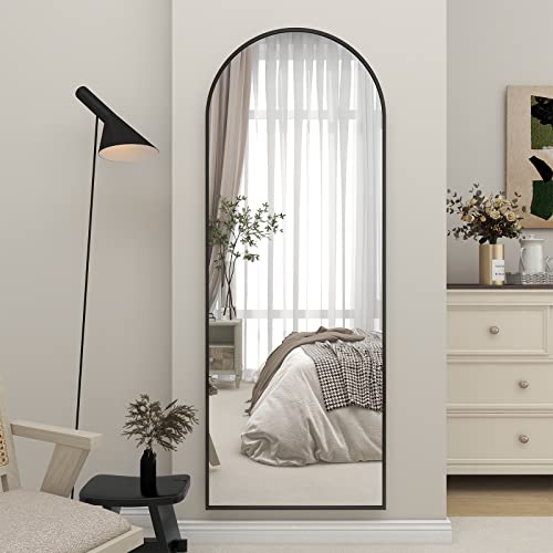 Koonmi Arco specchio per tutto il corpo, 45 x 144 cm, arrotondato a lunghezza inferiore con telaio in lega di alluminio, specchio intero con supporto, in piedi, appeso o appoggiato alla parete, nero