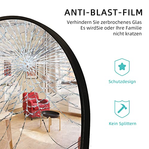 Vetro di alta qualità: lo specchio a corpo intero è realizzato in vetro float di alta qualità, che offre un'immagine super HD e una riflessione senza distorsioni. La parte posteriore è ricoperta da una membrana a prova di esplosione, quindi è più sicura. Anche se accidentalmente danneggiato da una forza esterna, le parti rotte dello specchio non spruzzeranno in tutte le direzioni