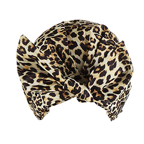 Koopev, cuffia da doccia da donna, riutilizzabile, per capelli secchi, con fiocco, per tutte le lunghezze dei capelli, cuffia da doccia (leopardo)