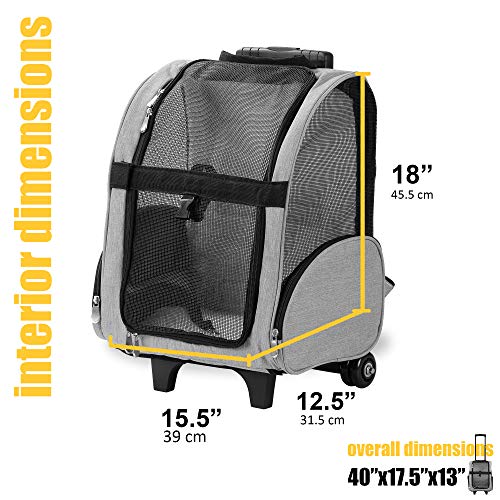 KOPEKS Zaino Deluxe Pet Travel Carrier con ruote doppie - Grigio - Large (KPS-1116)
