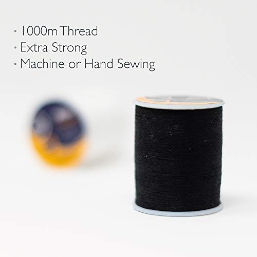 KORBOND Filo Poliestere Nero 1000 m Filo Rivestito 1000 m - Filo Universale Forte - Ideale per Cucire a Mano, Cucire a Macchina, per Impunture, lavori di Riparazione - più Robusto dei Fili Naturali