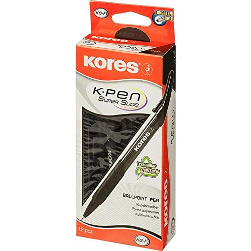 Kores - K6: Penne a Sfere Retrattile Nera, Biro a Punta Fine da 0.7 mm con Inchiostro a Prova di Sbavature con Impugnatura Morbida per Scuola e Ufficio, Confezione da 12