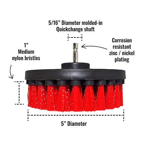 ✔ COMPITI DI PULIZIA: "Spazzola per trapano Premium" con setole rosse rigide è uno strumento professionale per la pulizia di: garage, mattoni, piastrelle per esterni, pietra, ghisa, piastrelle per pavimenti, tamponi, terrazza, camino, stucco, piscina, cerchioni di auto e altre attività generali.