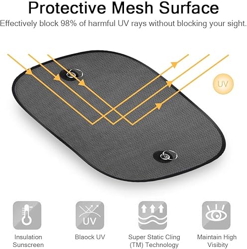 Auto sole protezione: Realizzato in materiale di alta qualità, i nostri parasole bloccano i dannosi raggi UVA e lasciare la minima quantità di sole e calore all'interno. Inoltre, resteranno freschi gli interni della vostra auto. Per l'effetto di protezione solare, il materiale delle tendine parasole è abbastanza traslucido per sicurezza e visibilità durante la guida e la visione delle spalle.