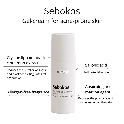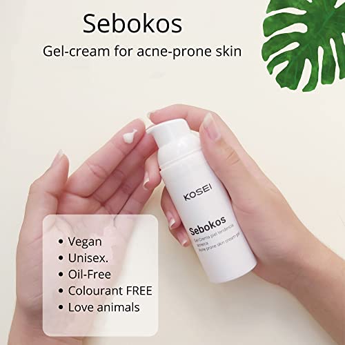 Kosei - Sebokos Gel/Crema per Pelli con Acne - 50 ml - Trattamento per l'Acne - Ideale per Pelli Grasse - Riduce Zone Lucide, Punti Neri e Macchie - Senza Oli - Unisex - Vegano