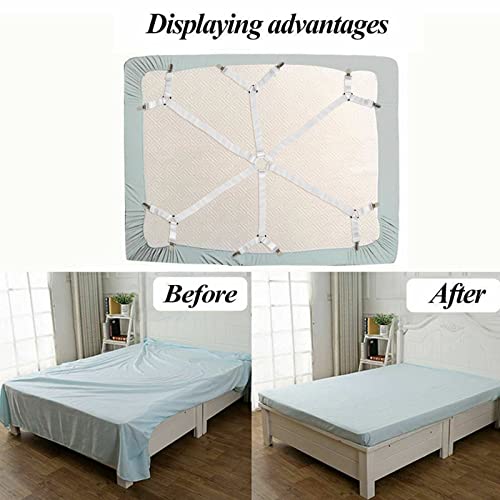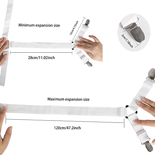 KOSHIFU Ferma Lenzuola Elastici per Lenzuola con Pinze Clip Bretelle Elasticizzate Regolabili per Angoli Lenzuola Tenditore per Lenzuolo Elastico Coprimaterassi Angoli Lenzuola Letto o Divano Bianca