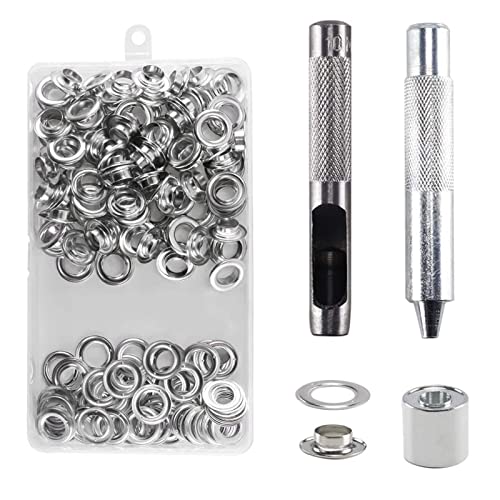 KOSHIFU Kit Occhielli per Teloni 12mm Occhiellatrice per Teloni Professionale 100Set Occhiello Strumento di Occhielli Grommet Rondelle con Strumenti Occhielli Metallici per Scarpe Borse Abbigliamento
