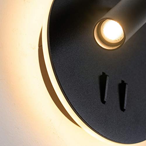 Kosilum - Lampada da lettura a doppio LED e interruttore, modello Bilbao, luce bianca calda, illuminazione per soggiorno, camera, cucina, corridoio, 3 W + 6 W, 500 lm, LED integrato, IP20