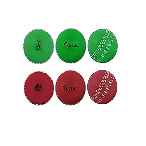 Kosma Coppa del Mondo Inghilterra e Galles 2019 Windball Practice Cricket Ball Palline da Allenamento morbide - Confezione da 6 Pezzi - 3 Pezzi: Rosso con Cucitura Bianca, Verde con Cucitura Bianca