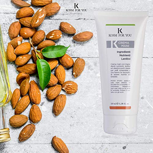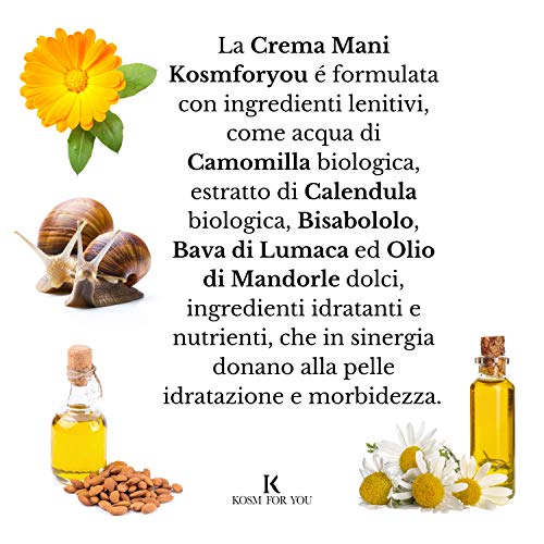 Kosmforyou Crema Mani Idratante Nutriente Lenitiva Elasticizzante per pelle Secca, Screpolata e Sensibile. Ingredienti Biologici (50 ml)