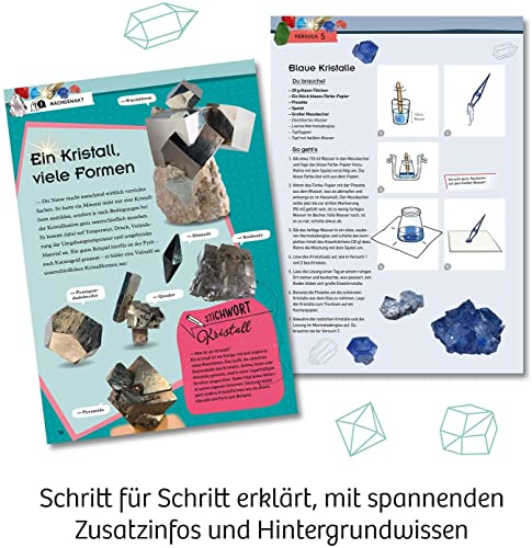 Le istruzioni spiegano passo dopo passo tutti gli esperimenti di cristallicoltura e l'allevamento della triopse e completano con informazioni di sfondo emozionanti adatti all'età