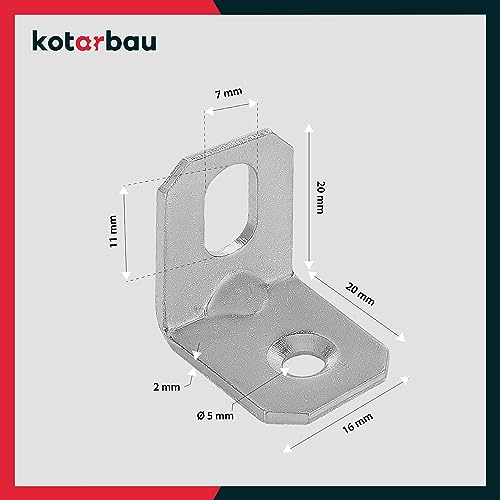 KOTARBAU, angolo di regolazione 20 x 20 x 16 mm, angolo di bordatura, raccordo a gomito, foro lungo, apertura di regolazione, raccordo in legno, angolo di montaggio (50)