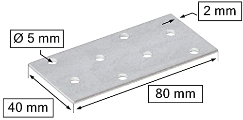 KOTARBAU Piastre forate 76 x 40 mm, zincate argento, connettore piatto per legno interno - esterno piastra forata in acciaio lamiera forata (1)