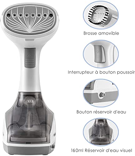 KotiCidsin Ferro da Stiro Verticale, Stiratrice Verticale Riscaldamento Rapido in 20s, 20 g/min, Portatile Stiratrice a Vapore Utilizzato in tessuti e tessuti, Grigio/Bianco