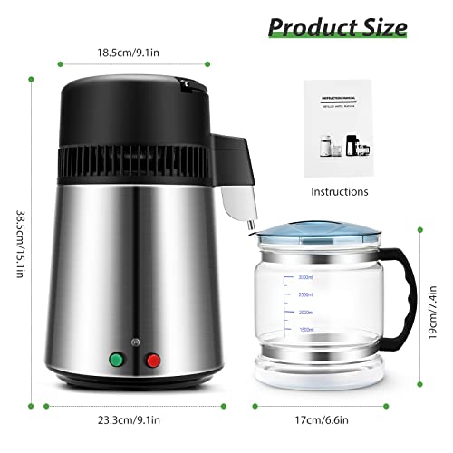 Performance potenti: 750 W potente macchina con sufficiente volume del contenitore interno di 4L (4.2 qt. 1,1 gal.). Gli elementi di riscaldamento rendono la velocità di distillazione oltre un quarto di gallone all'ora, distilla fino a 6 galloni/24L al giorno (4L/3.5h). Dotato di funzioni di resistenza al rocciosa di surriscaldamento e a secco