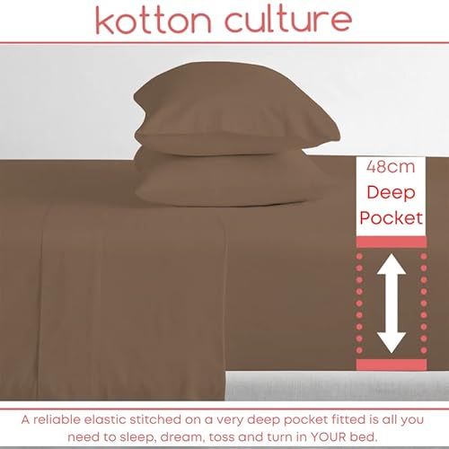 Kotton Culture Lenzuola Super King 4 Pezzi 100% Cotone Egiziano 600TC Biancheria da Letto in Cotone a Fiocco Lungo Lenzuola per Hotel di Lusso con Tasca Profonda Tessuto Raso (Marrone chiaro)