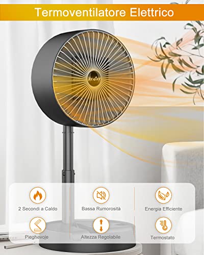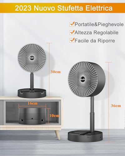 ☀【Design creativo】Il termoventilatore basso consumo ha un design elasticizzato unico. È possibile regolare l'altezza di questa ventola del stufa portatile per soddisfare le diverse esigenze. Il design pieghevole consente di risparmiare spazio di archiviazione. La testa della ventola di riscaldamento può essere ruotata di 180° per soddisfare le tue esigenze in diverse direzioni