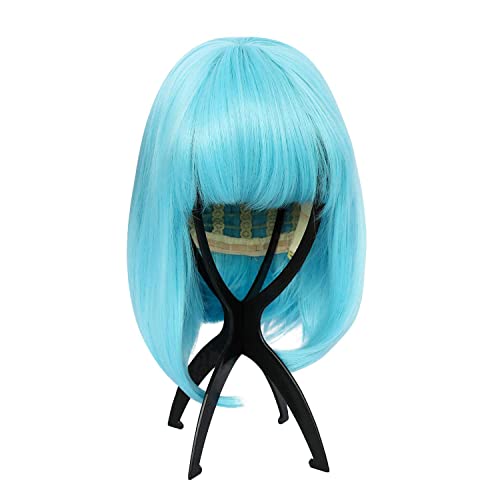 Kovake Supporto pieghevole per parrucche corte, in plastica, supporto per parrucche da 14 pollici, espositore pieghevole portatile per parrucche e cappello (Nero)