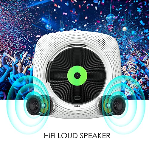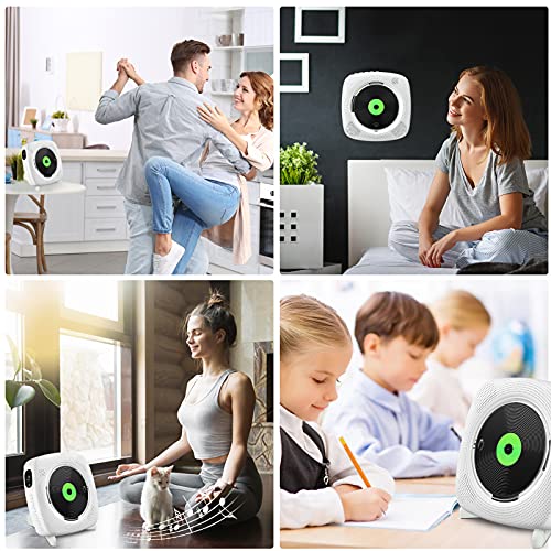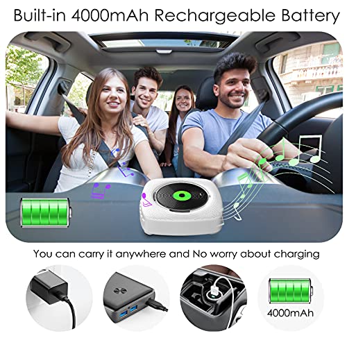 KOVCDVI Lettore CD Portatile con Bluetooth e 4000mAh batteria Altoparlanti incorporati Lettori CD per la casa Montabile a parete con Telecomando e Radio FM Supporto Riproduzione per USB e AUX