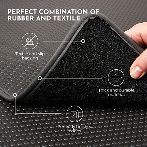 Qualità DuoGrip gomma: resistente e flessibile, protegge i rivestimenti della tua auto dall'usura quotidiana e dall'umidità. I nostri tappetini per auto in gomma DuoGrip sono flessibili, facili da installare, facili da pulire. Ultra resistente, ideale per l'autunno e l'inverno.