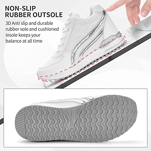 KOWAYI Sneakers Zeppa Donna Casual,Scarpe da Ginnastica con Zeppa Tacco 7CM Sneakers Platform Basse Sportive Fitness Scarpe da Donna Wedges Passeggio Bianco 35