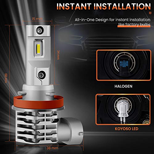 Lampadina per fari a led KOYOSO H11 con volume ridotto, tutto in un design compatto, Configurazione necessaria integrata, Riduce notevolmente le difficoltà di installazione, Non è necessario modificare. Utilizzare come abbagliante/anabbagliante, fendinebbia per i tuoi veicoli/motore