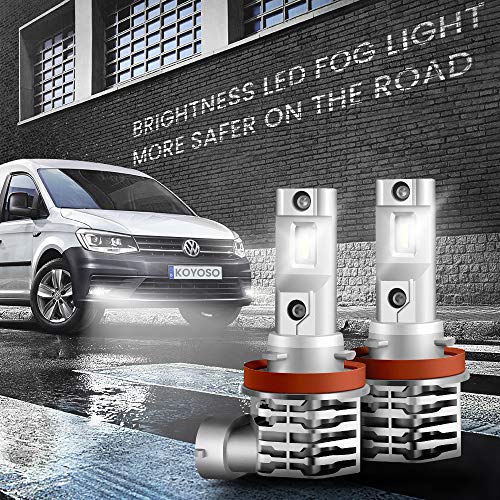 KOYOSO H11 LED fendinebbia dotata di 6pcs LED chip ZES producono 3000LM per lampadina (6000LM/coppia), 6000K bianco xeno simile. Basso consumo energetico, elevata luminosità e alte prestazioni rispetto alla lampadina alogena originale. Guarda sempre più in là nel giorno nebbioso