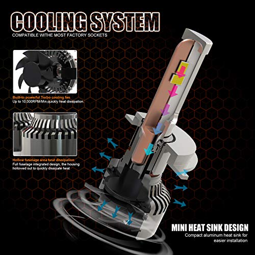 SISTEMA DI RAFFREDDAMENTO AD ALTA TECNOLOGIA: La dissipazione del calore bidirezionale ed il corpo in alluminio da aviazione eliminano il calore generato dai chip LED rapidamente verso i lati. La ventola silenziosa ad alta velocità genera una forte corrente di raffreddamento per accelerare la dissipazione del calore, rendendo l'efficienza di raffreddamento del 100% superiore rispetto alle normali lampadine a LED ed assicurando una durata di vita superiore alle 55.000 ore.