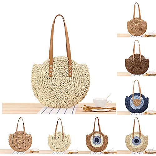 KPJSJ Borsa da Donna in Paglia Borsa in Rattan Borsa a Tracolla Tessuta Borsa a Mano in Vimini Semplice Portatile da Spiaggia in Vimini