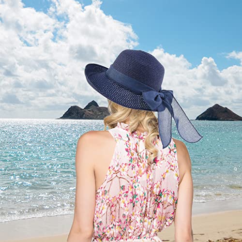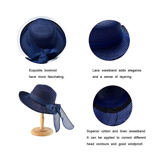 Kqpoinw Cappelli Cappellini, Ladies Cappello di Paglia Cappellino Pieghevole Floppy Wide Brim Cappello da Sole Estivo Cappelli da Spiaggia per Le Donne (Blu)