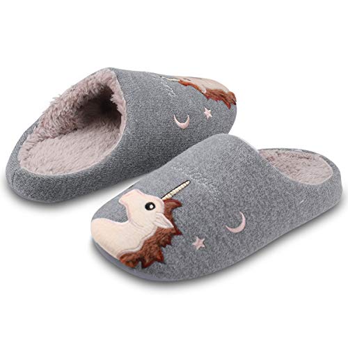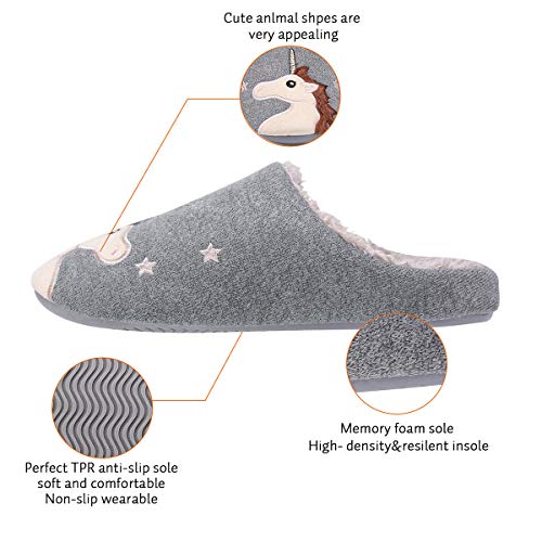 Kqpoinw Pantofole Donna, Pantofole Uomo Pantofole Pelose Calde Comode Pantofole Invernali Antiscivolo Pantofole Unicorno per Donna, Uomo e Bambino (42/43 EU, Grigio Scuro)