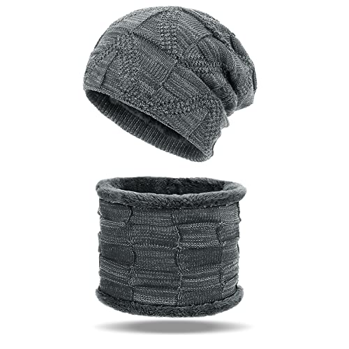 KQueenStar Cappelli Invernali con Sciarpa, Cappello Berretto Invernale Uomo Donna Invernali Sciarpa Berretto in Maglia Sciarpa Berretto Uomo Beanie Cappelli 2 Pezzi Invernale Caldo Unisex (Grigio)
