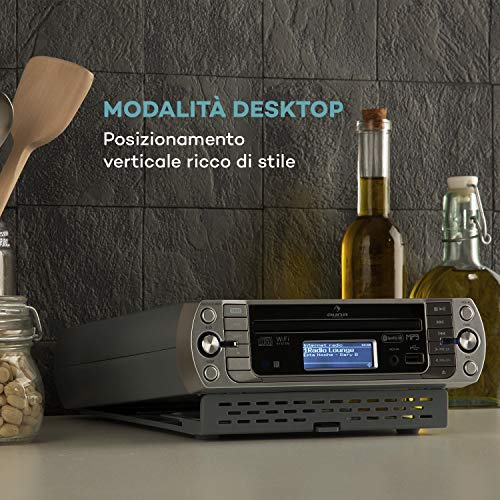 CARATTERISTICHE DI RIPRODUZIONE: La versatile radio riceve fino a 10.000 canali e dispone di WiFi integrato, un lettore CD classico, una porta USB per la riproduzione di MP3 e un ingresso aux.