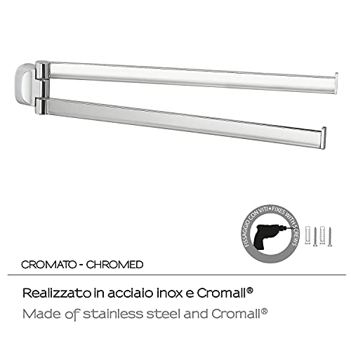 Gedy Krabi Porta Asciugamani Snodo, Colore Cromo, Componenti Realizzati in Acciaio Inox e Cromall, Garanzia 2 Anni, Misure 6,6 x 35 x 3,3 CM e Peso 0,3 kg, Design R&S, Cromato, Unica