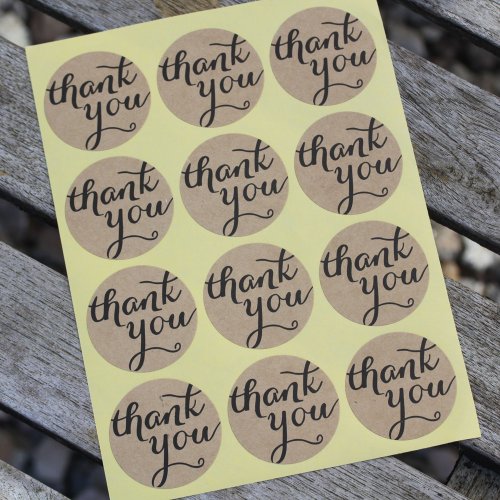 Kraft Thank You sticker Circle - rustico vintage wedding/Craft/Cards x 36