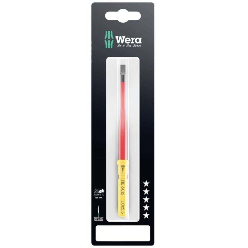 Dettagli tecnici Ambito di applicazione (cacciavite) Elettricisti Forza Taglio Larghezza della lama 5.5 mm Tipo prodotto Lama intercambiabile per giraviti Kraftform Kompakt VDE 60 IS take it easy SB, 1 x 5,5 x 157 mm Lama intercambiabile con diametro della lama ridotto con isolamento di protezione integrato, in questo modo è possibile raggiungere e azionare elementi a vite e a molla profondi. Controllo pezzi a 10.000 V per lavorare in sicurezza alla tensione approvata di 1.000 V.. Testo tradotto automaticamente Punti di forza e dettagli Lama intercambiabile VDE per viti a taglio 1 x 1.0x5.5x157 Incluso nella consegna Lama intercambiabile VDE per viti a taglio 1 x 1.0x5.5x157
