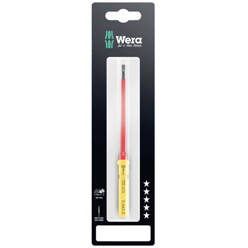 Dettagli tecnici Ambito di applicazione (cacciavite) Elettricisti Dimensione del prodotto, larghezza 6 mm Dimensione del prodotto, lunghezza 23 mm Dimensioni (L x L x A) 23 x 6 x 14 mm Dimensioni prodotto Altezza 14 mm Forza Taglio Larghezza della lama 3.5 mm Peso 23 g Tipo prodotto Lama intercambiabile per giraviti Kraftform Kompakt VDE 60 i Take it easy SB, 0,6 x 3,5 x 157 mm Lama VDE per sistema di impugnatura/lama di ricambio Kraftform Kompakt per sostituzione rapida della lama senza strumenti speciali. Utensili collaudati in conformità con IEC 60900. Controllo pezzi a 10.000 V per lavorare in sicurezza alla tensione approvata di 1.000 V.. Testo tradotto automaticamente Punti di forza e dettagli Lama intercambiabile VDE per viti a intaglio 1 x 0,6 x 3,5 x 157 Incluso nella consegna Lama intercambiabile VDE per viti a intaglio 1 x 0,6 x 3,5 x 157