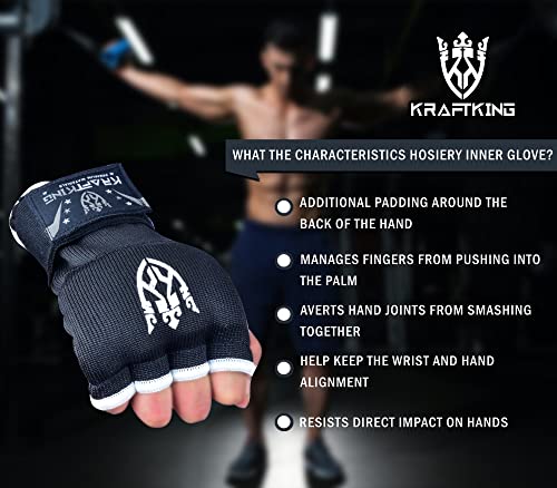 Kraftking Guantoni da boxe interni con cintura da polso, fasce da polso, guanti da allenamento grappling interni (XL, nero)