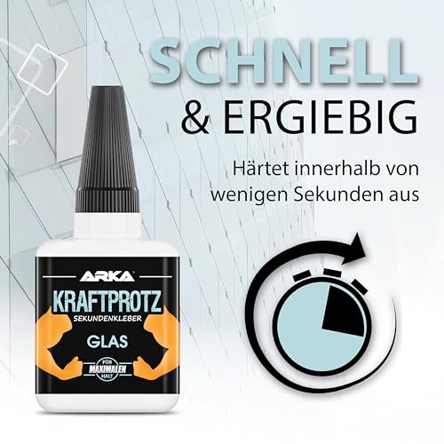 ARKA - KRAFTPROTZ GLASS 50 g | Supercolla extra forte | Colla trasparente per vetro | Supercolla liquida | Impermeabile | Facile da applicare e da fissare in modo sicuro
