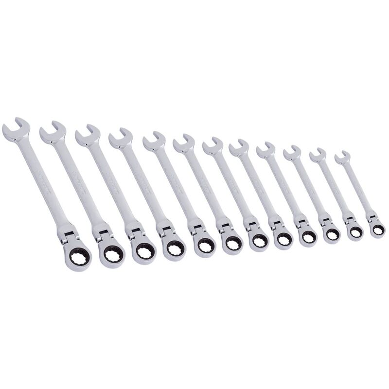 Kraftwerk 3403-54 Flex Clickraft Clickraft Ring Tessuto KeySet 12 pezzi da 8 a 19 mm chiaramente disposto nella valigia I tasti a cricchetto sono ruotati girevoli fino a 180 ° (verso l'alto o verso il basso di 90 °) il cambiamento di direzione è facile girando Lunghezza chiave: 8 - 9 - 10 - 11 - 12 - 13 - 14 - 15 - 16 - 17 - 18 - 19 mm