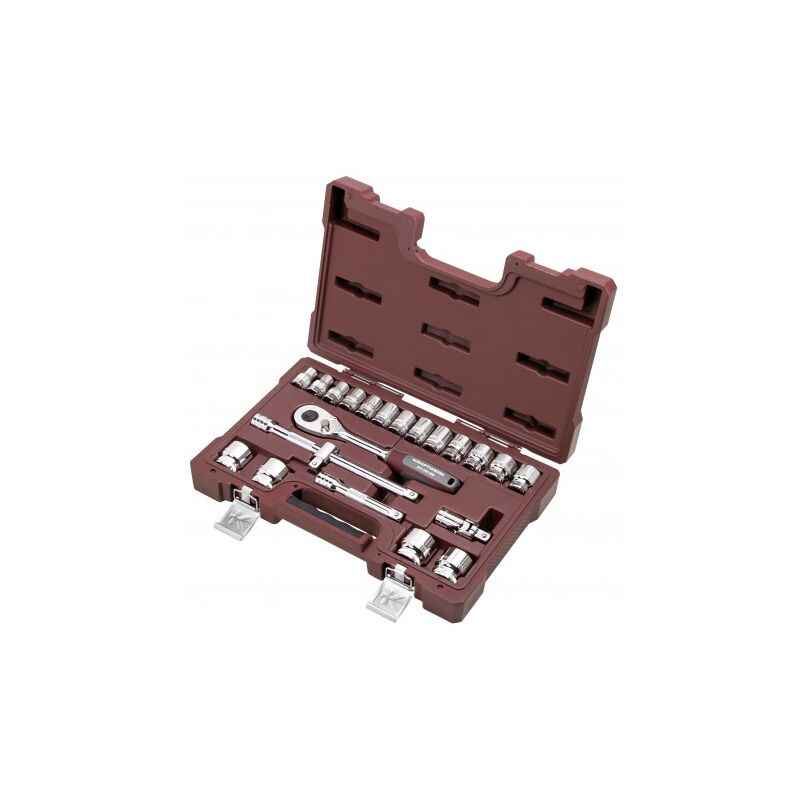Dettagli: Questo set è composto da: - Cricchetto reversibile, 72 denti - Bussole da 10 a 34 mm - Estensioni Dimensioni: 410 x 265 x 80 mm Peso: 4,16 kg