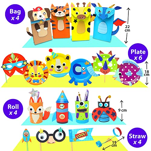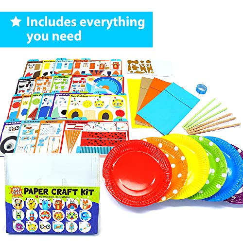KRAFUN Il mio primo kit di carta per animali da safari, include 18 arti e mestieri fai-da-te Animali da zoo, attività artigianali organizzate Scatola di forniture Assemblaggio di giocattoli creativi