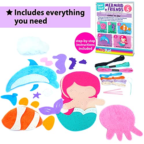 KRAFUN sirene kit decoupage per bambini, Kit Feltro Fai Da Te, feltro kit artigianale, include 5 bambole di animali marini di pezza, istruzioni, lavoretti creativi per ragazze