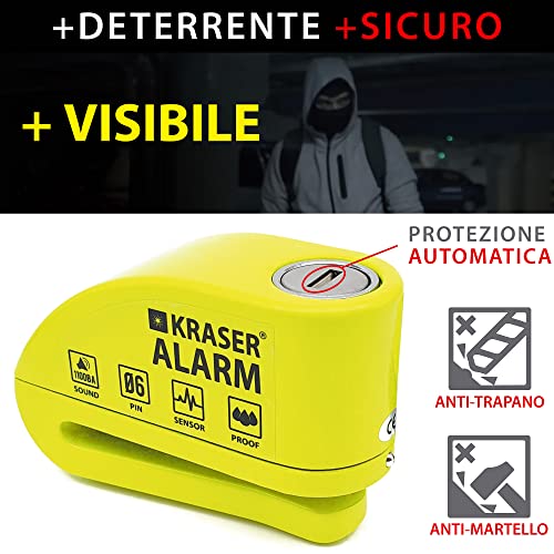 SCEGLI IL MARCHIO N. 1 IN GERMANIA PER PROTEGGERE LA TUA MOTO: Il marchio KRASER è sinonimo di qualità, ingegneria e passione per la prevenzione dei furti. Con questo bloccadisco per moto con allarme, sceglierai la migliore protezione antifurto per la tua moto. Non farti rubare la tua moto, proteggi il tuo investimento con KRASER!